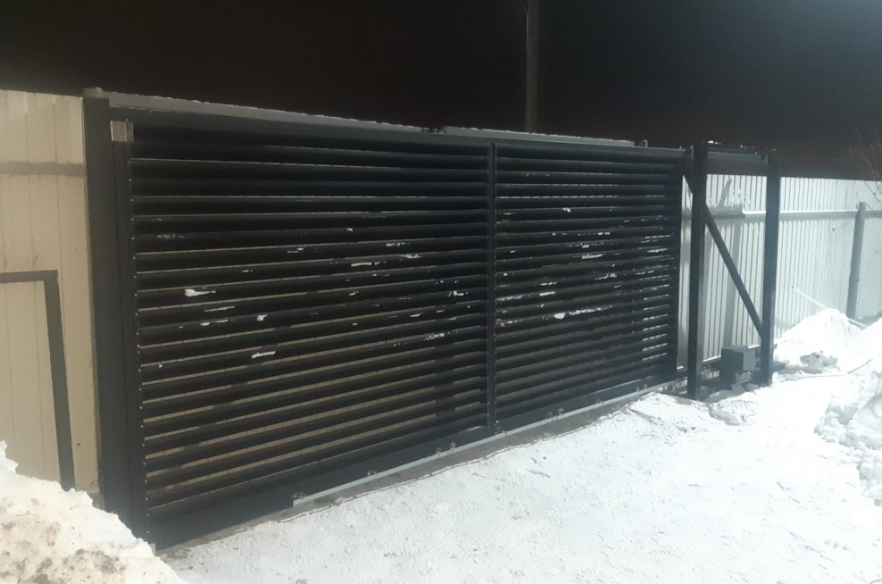 4. Откатные ворота: Открываются в сторону вдоль забора, подходят для широких проемов.